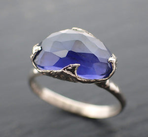 I created this setting in wax then cast it in recycled solid 14k White gold at my home studio. This ring is a size 7 it can be sized. The stone is blue iolite. it measures about 8.5mm X 12.5mm I created a rustic texture in the gold.