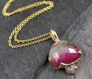 Raw Rough Watermelon Tourmaline 14k gold Pendant Gold Necklace gemstone Jewelry byAngeline