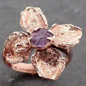 I created this ring from real flowers out of my garden. Each one is slightly different with a unique stone in the center. A rustic one-of-a-kind stone and setting as unique as you are. I create the setting in wax then cast it myself in my home studio. I carefully hand cut each prong to match the unique shape of the stones. The Sapphire is just under 5mm. The widest part of this ring is 20mm from petal end to petal end.